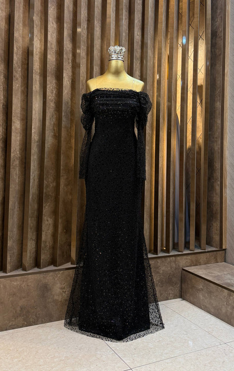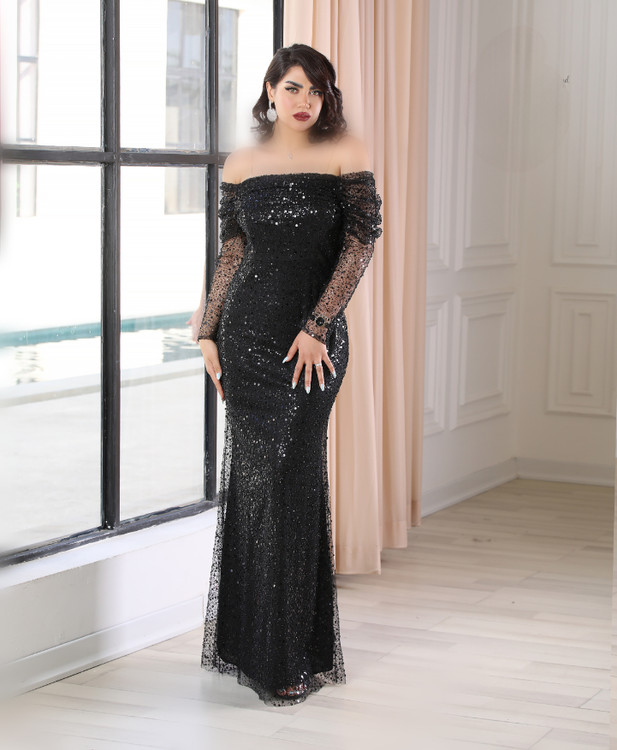 طراحی: دکلته سرشانه باز، پولکی براق، اندامی