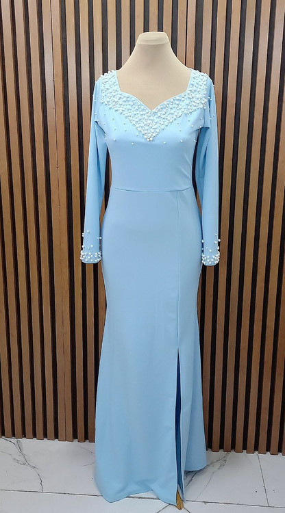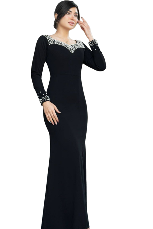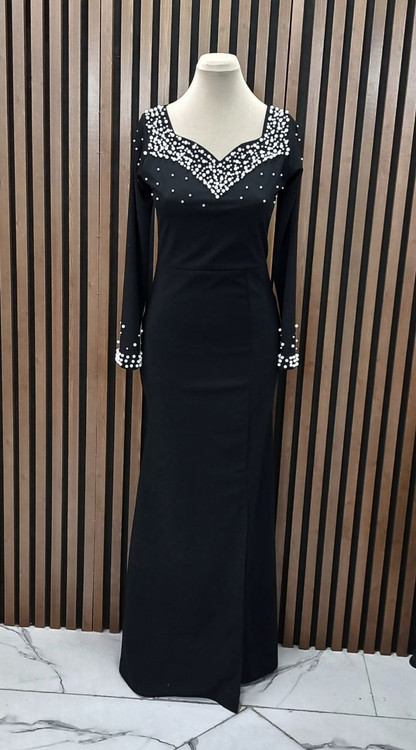 پیراهن زنانه مجلسی/کرپ دالقیچ با مرواریدهای پانچ شده