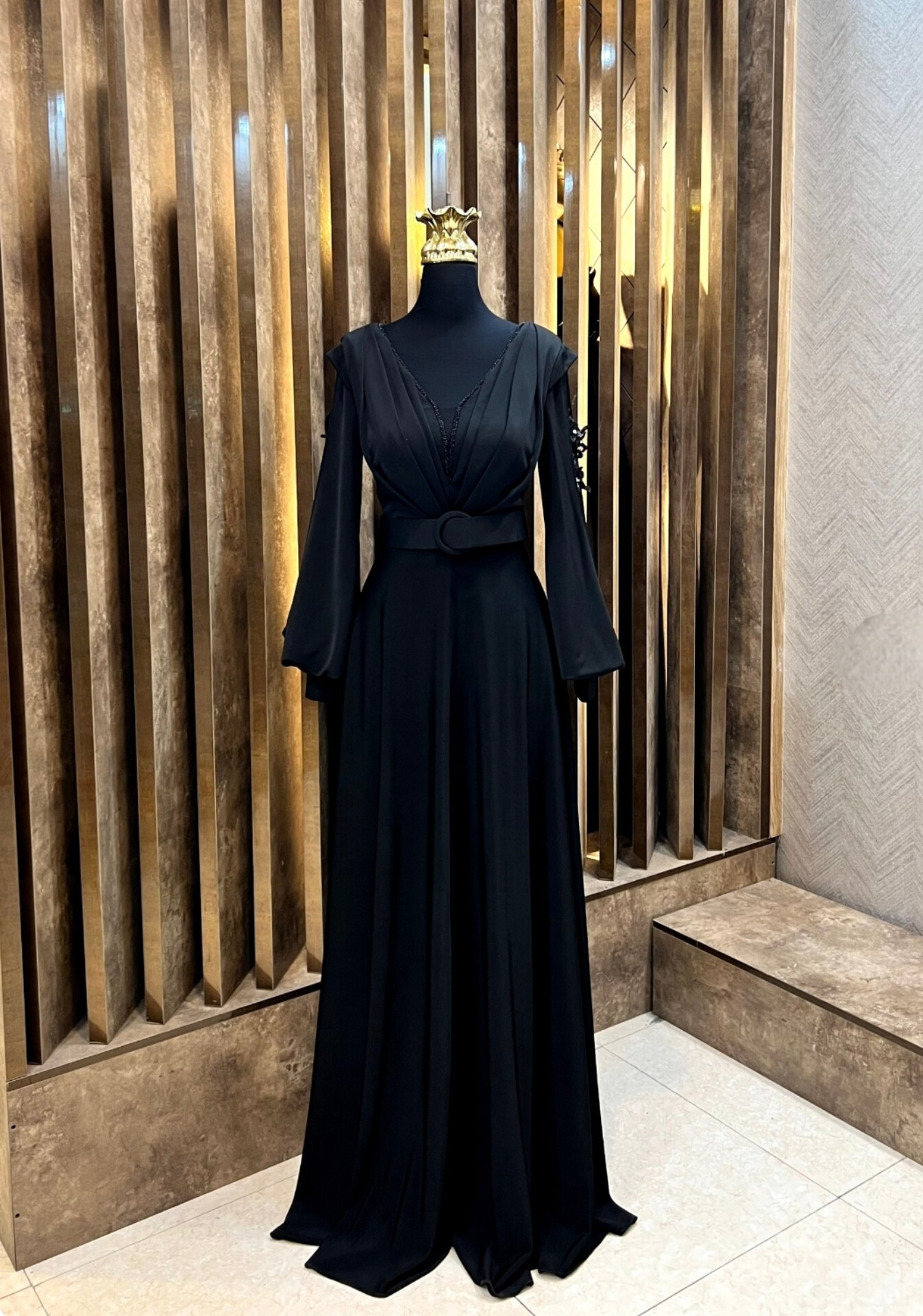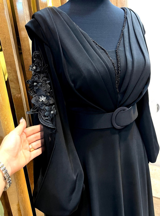 ⚜جنس : کرپ غواصی و استین تور و دانتل برجسته یقه نواردوزی شده با کمربند